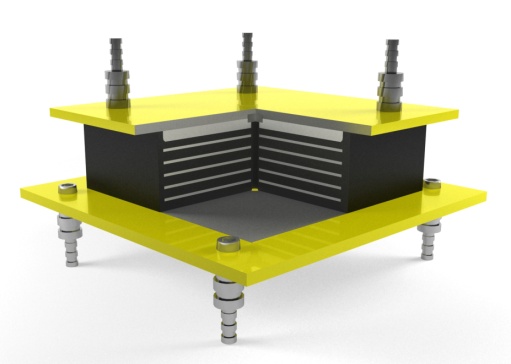 插入若干個(gè)鉛芯的分層橡膠支座形成一個(gè)緊湊的隔震裝置就是鉛芯橡膠隔震支座。因?yàn)殂U芯的力學(xué)特性很好,分層橡膠支座能與其結(jié)合地非常好,因此其非常適合作為減隔震材料。此外,對(duì)于塑性循環(huán)具有很好的耐疲勞性能,而且性能為理想彈塑性,純度較高的鉛也易于得到,其力學(xué)性能也非常的可靠。它的初始剪切剛度較高,剪切模量G約為130MPa,屈服剪應(yīng)力較低,約為10MPa。
