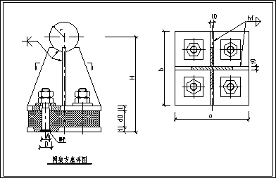 4、支座底板與節(jié)點板和垂直加勁肋的水平連接焊縫,一般采用角焊縫,焊角尺寸hf在6~10mm范圍內(nèi)。
