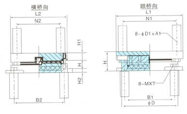 4、為改進(jìn)導(dǎo)向活動(dòng)支座的導(dǎo)向滑移性能、本系列支座采用了中部導(dǎo)向結(jié)構(gòu)。
